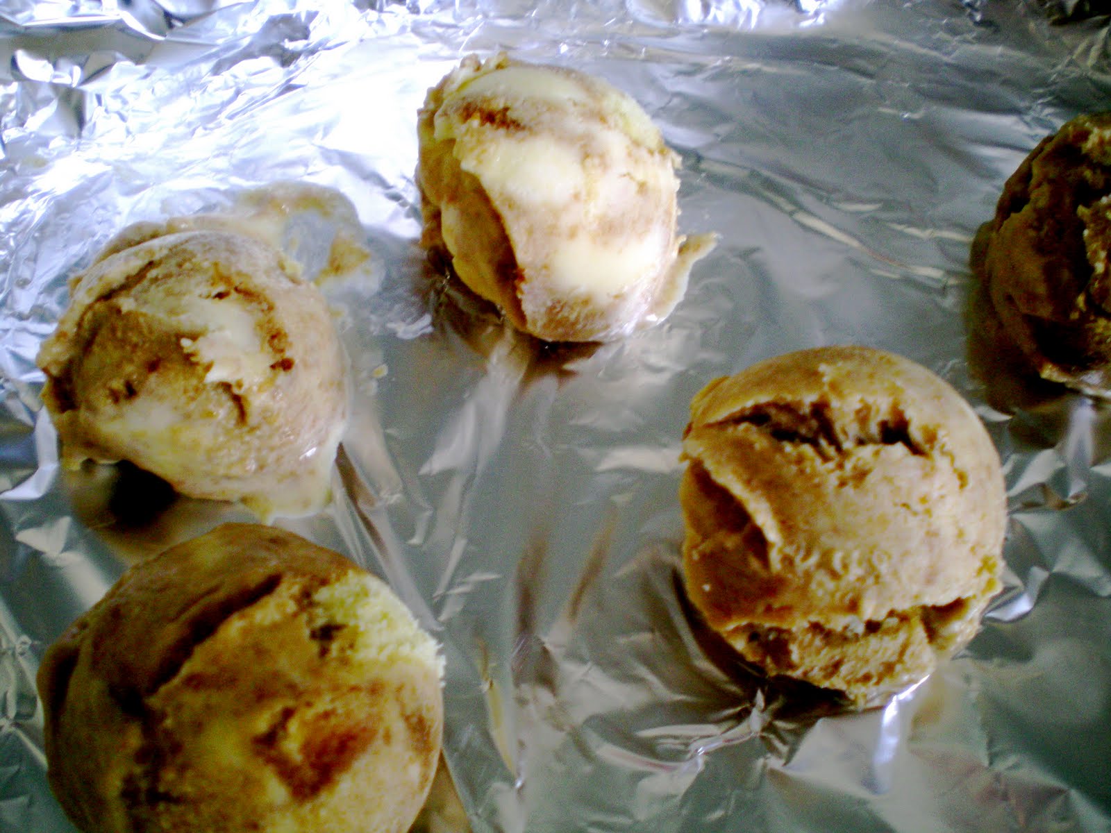 5. Łyżeczką do melona lub czymkolwiek, co pozwoli Ci stworzyć w miarę niewielkie kulki, uformuj trufle. Poukładaj je na papierze do pieczenia i odstaw znowu do zamrażarki na minimum 1,5h.