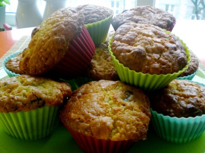 Dzisiaj podaję opcję podstawową. Właśnie tą sentymentalną, na której nauczyłam się piec mufiny – z pomarańczą, pomysłu Nigelli. Cudowny i niezawodny, za każdym razem.