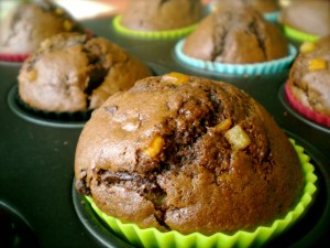Moją filozofię dotyczącą Mufinów opowiedziałam przy poprzednim wpisie, więc teraz ograniczę się tylko do jednej rady: zjedzcie choć jednego Mufina czekoladowego chwilę po wyjęciu z piekarnika, a nic już nie będzie takie samo. Płynna, gorzka czekolada w połączeniu ze słodyczą i aromatem pomarańczy to jest coś tak nieprzyzwoicie pysznego, że czasami trudno mi uwierzyć, że taki smak uzyskuje się używając dwóch misek i składników dostępnych w sklepie za rogiem.