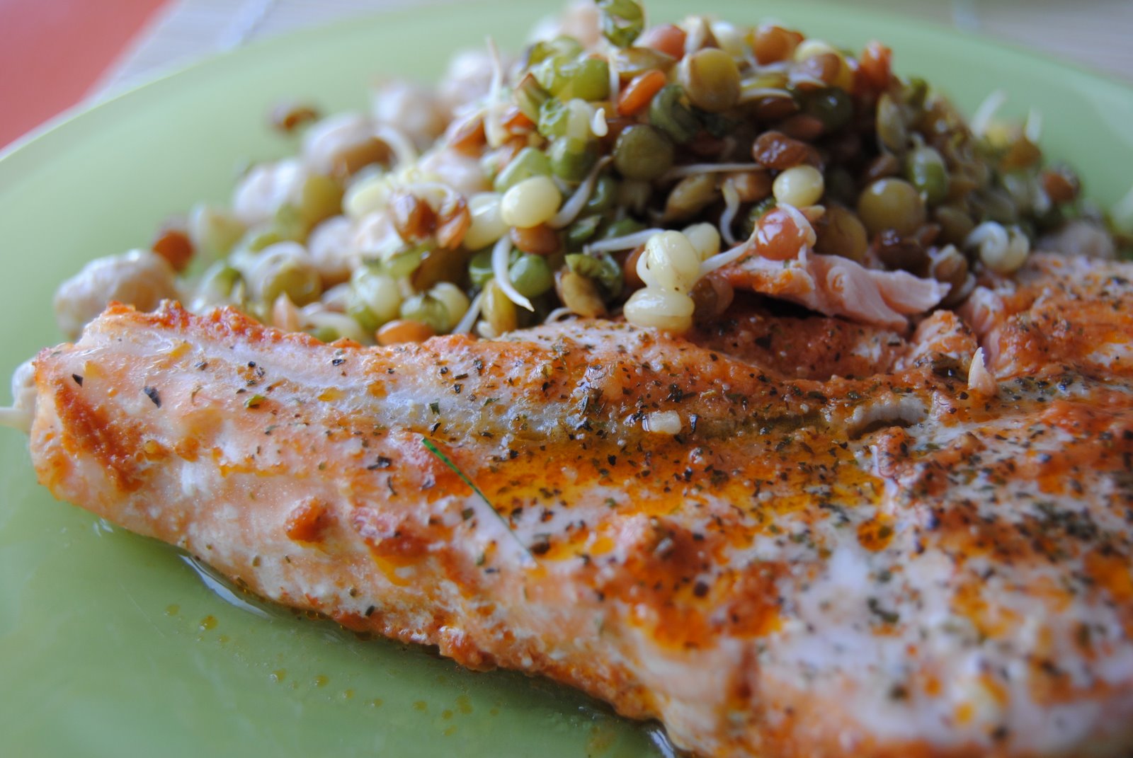 3. Upieczonego łososia podawaj z kiełkami i już 🙂
